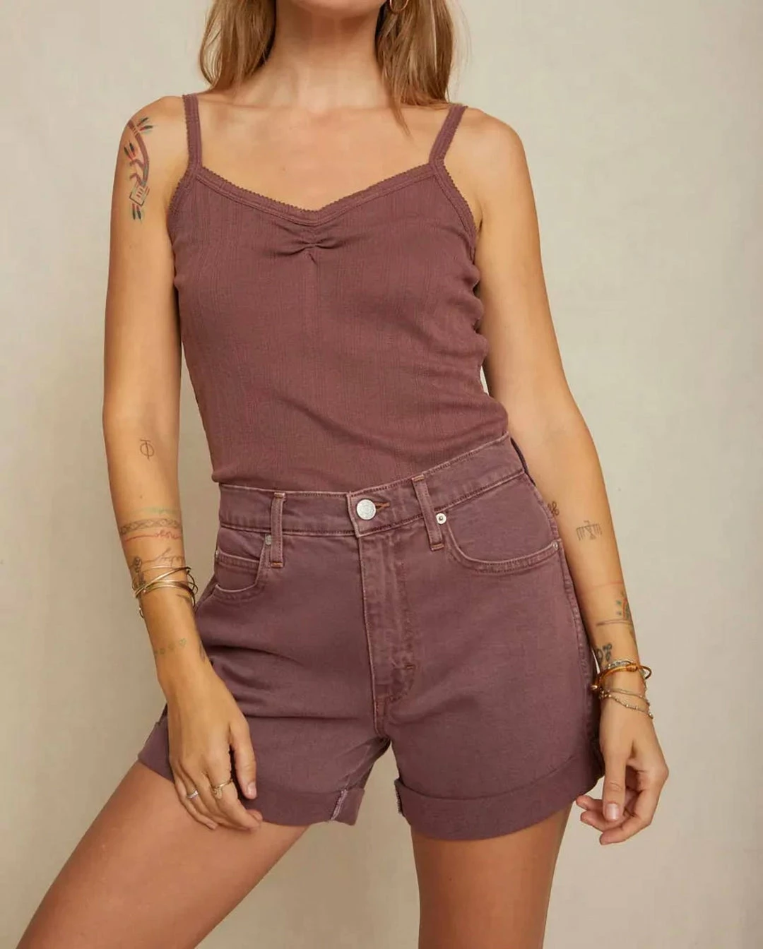 Be the first to review “Amo Tomboy Cuff Short in Bloodstone – women” Cancel reply