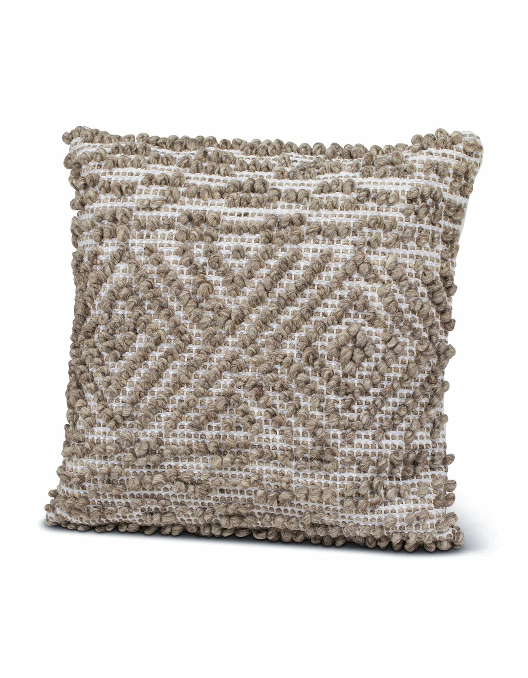 Handwoven by skilled artisans, this Handwoven Mocha Patterned Pillow matches our bench and is both comfortable and distinctive. Front – 80% Wool 20% Cotton. Back – Off White 100% Cotton Canvas