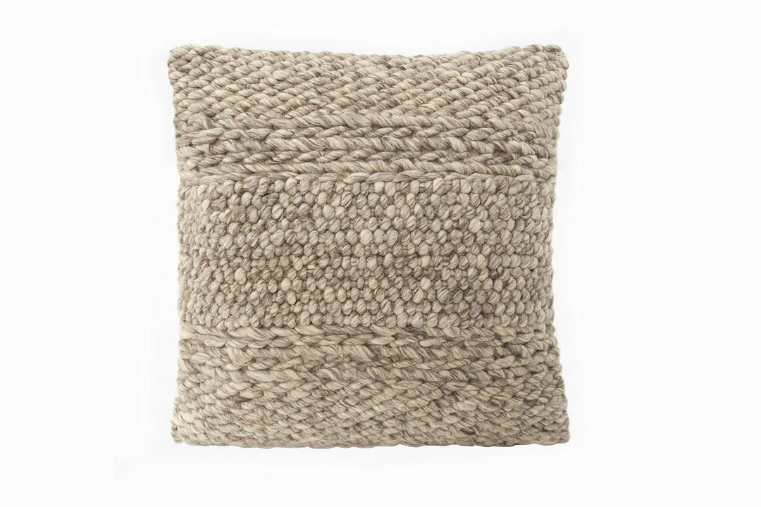 Handwoven by skilled artisans, this Textured Taupe Pillow Cover matches our bench and is both comfortable and distinctive. Front – 80% Wool 20% Cotton. Back – Off White 100% Cotton Canvas