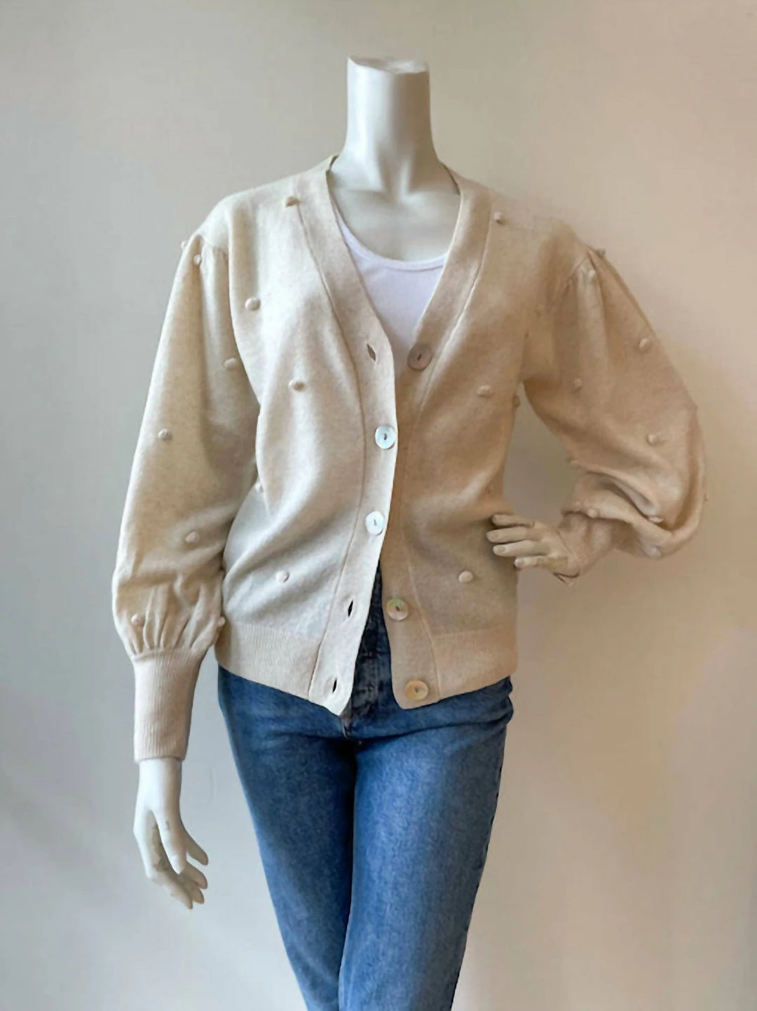 Brodie Cashmere Bonny Bobble V Cardigan in Beige – women