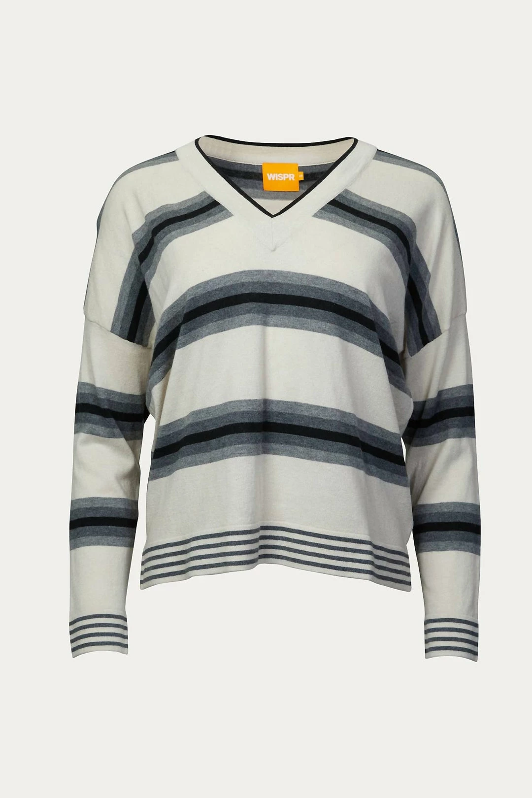 Brodie Cashmere Gradient Striped V-Neck Jumper in Canvas – women