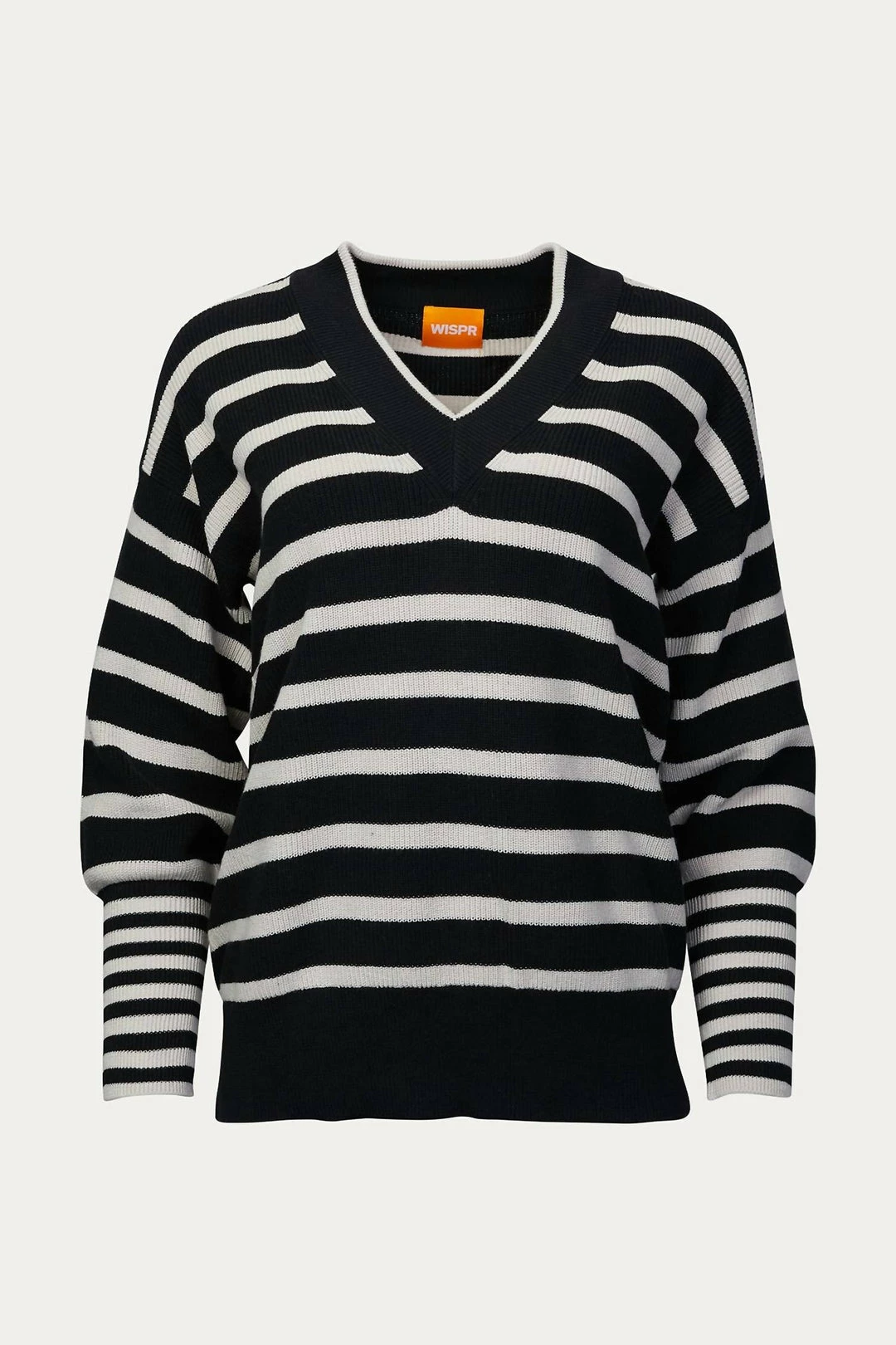 Brodie Cashmere Natalia Striped V-Neck Jumper in Coal – women