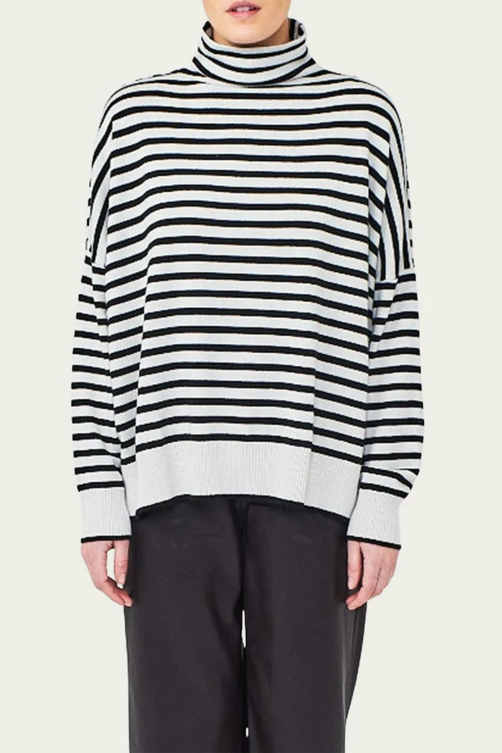 Brodie Cashmere Sage Funnel Neck Sweater In Silver Haze/Coal – women