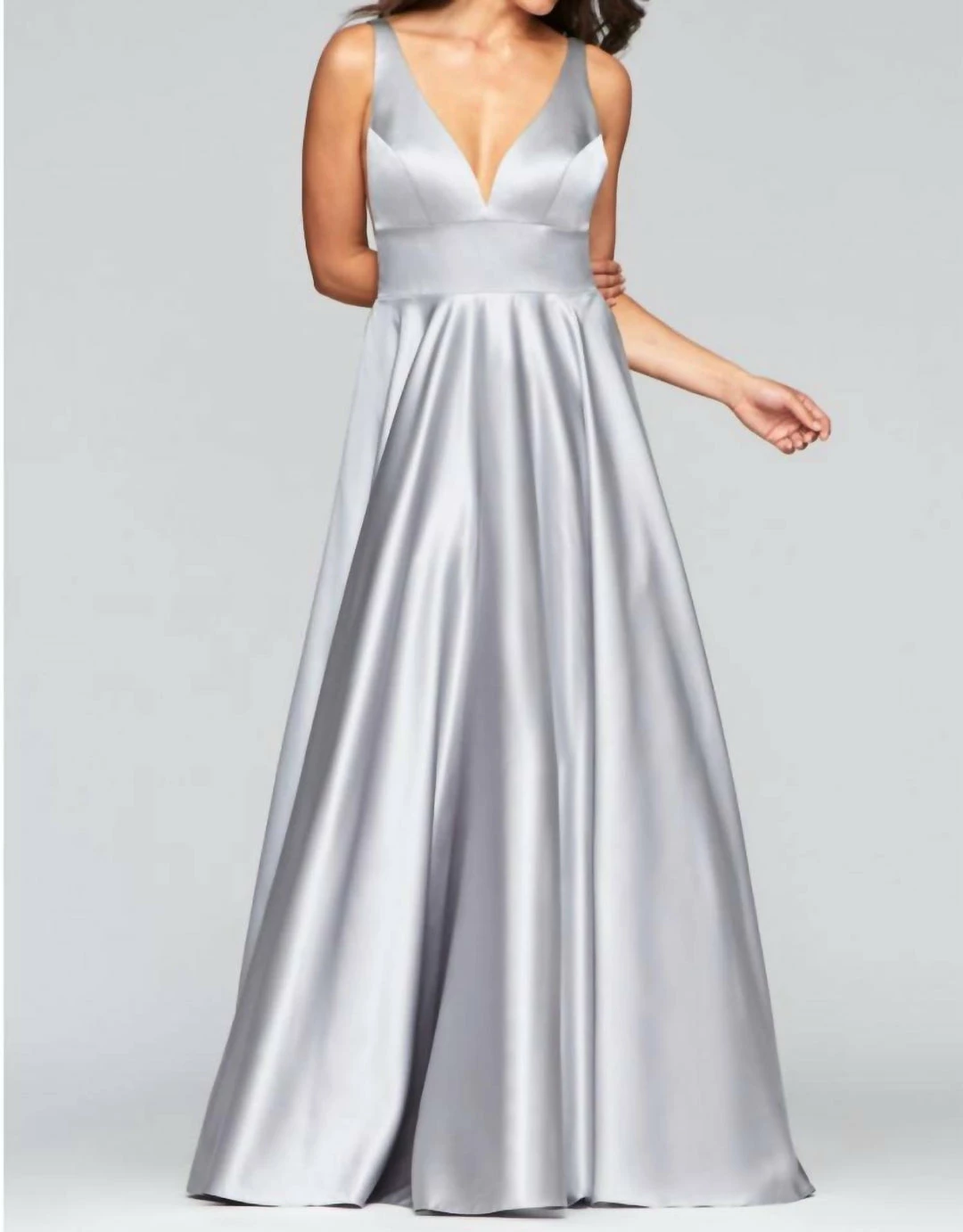Have fun and flow whimsically in Faviana Style S10474! This long satin v-neck dress has a side illusion and empire cut waist will make you look absolutely amazing. You’ll be sure to turn heads at any occasion – gala, formal, black tie, guest of wedding, or prom!!