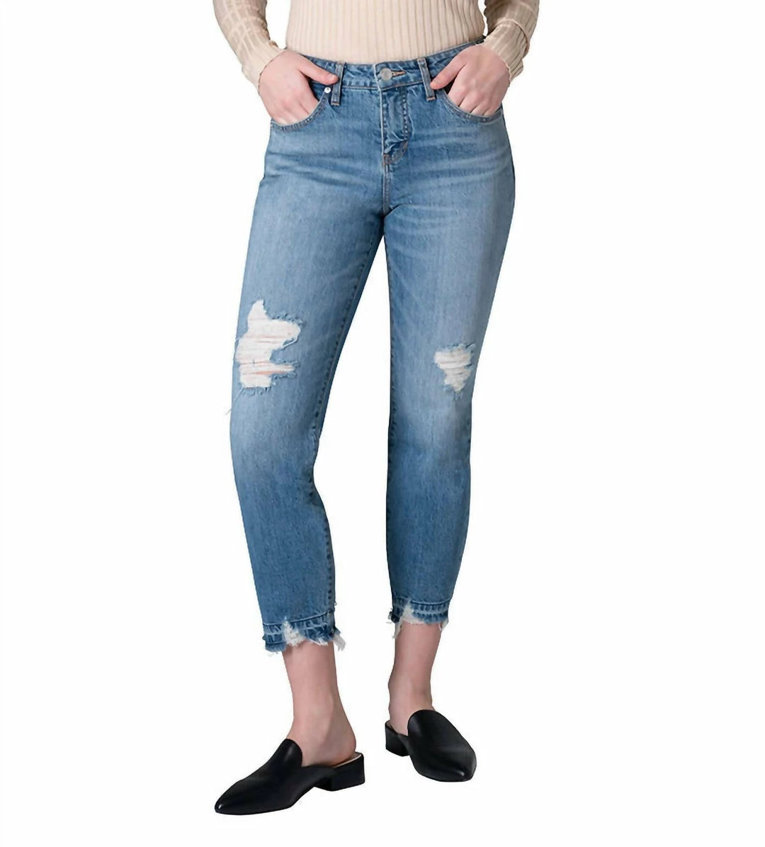 Comfortable and stylish, we love this cropped jean for all of the obvious reasons.