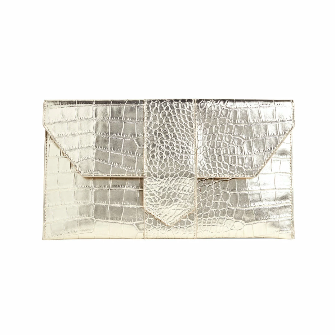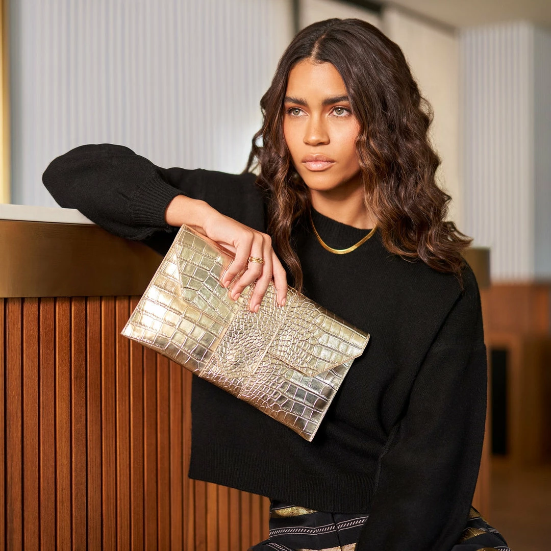 Carry this metallic mock-croc clutch to all your celebrations this season and give any look a glamorous upgrade.