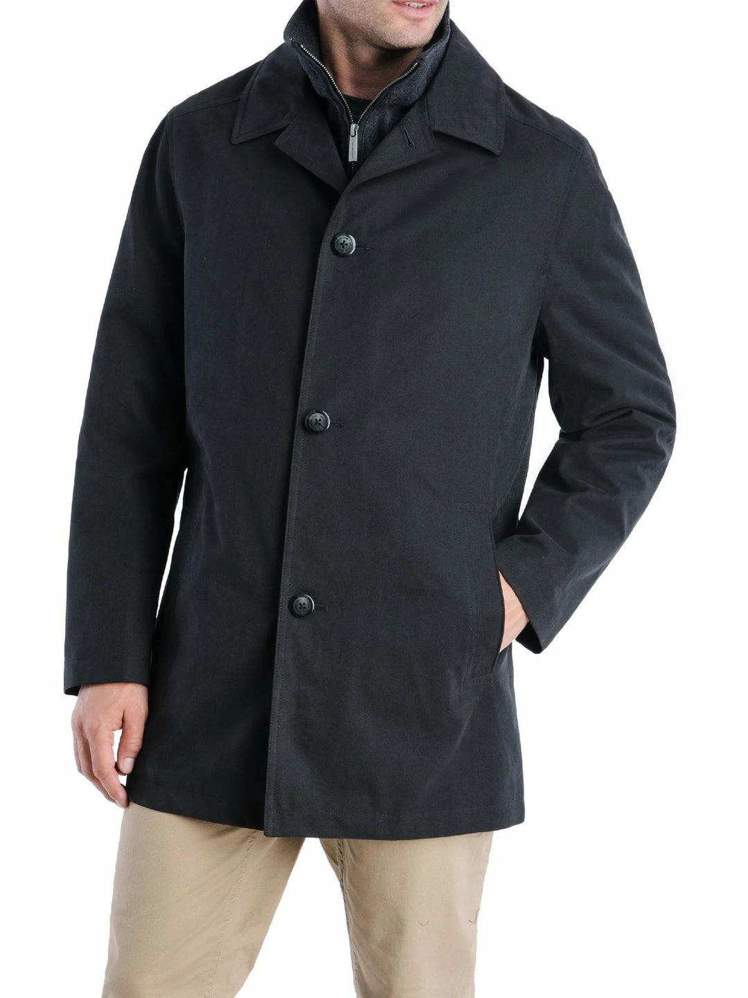 Beat the cold in the Berne micro twill all weather coat by London Fog. Made with 68% polyester and 32% nylon. This coat’s water resistant micro twill and interior bib lining will keep you warm and comfortable when temperatures start to drop. The notched lapels and sleek look offer effortless style for all occasions. Layer it up with all your favorite ensembles. Two front pockets will safely house your essentials while on the go. Button and zipper closures. This coat is guaranteed authentic.