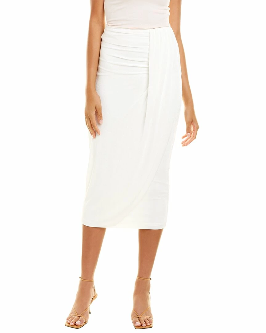 - Agasha Midi Skirt In Ivory With Elasticized Waistband And Draped Front