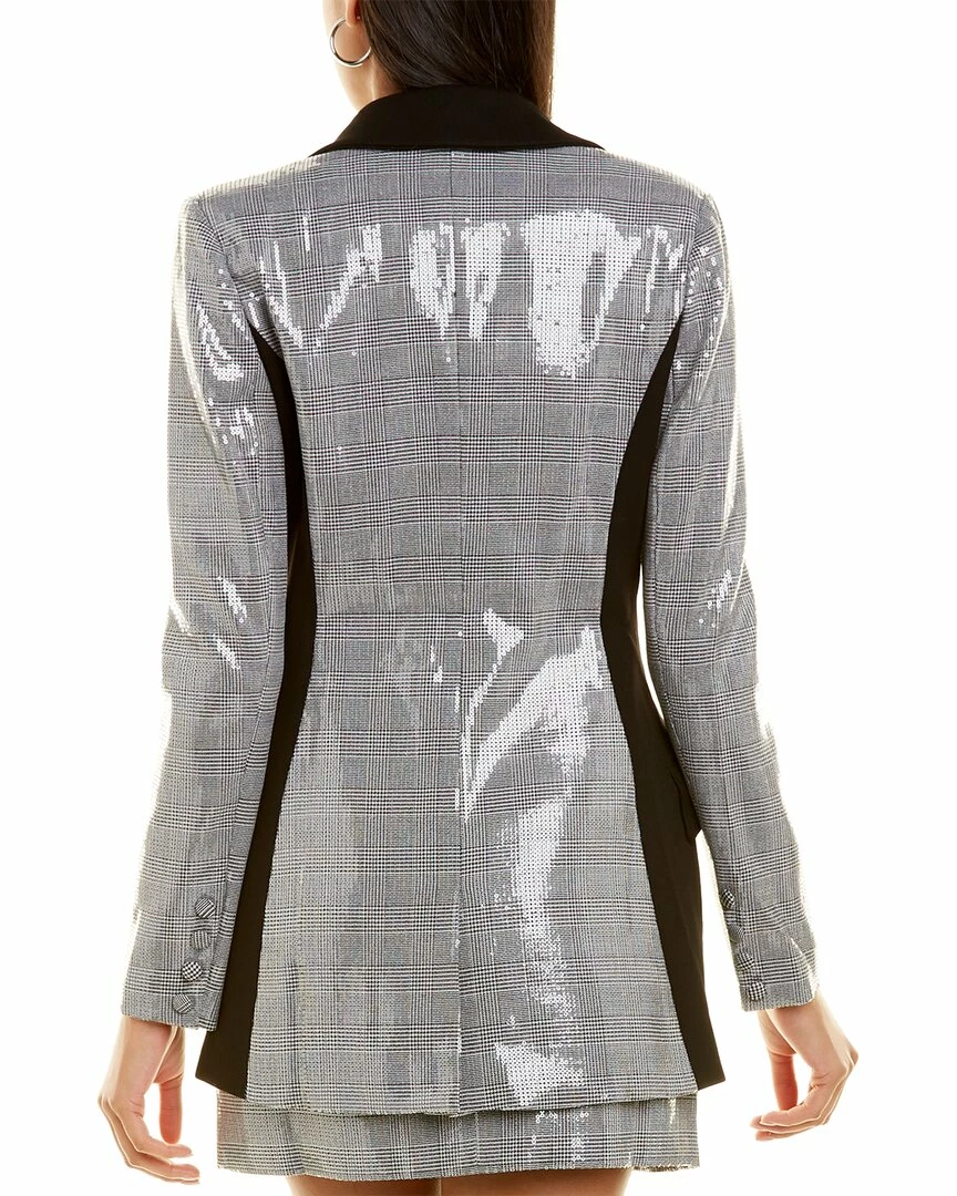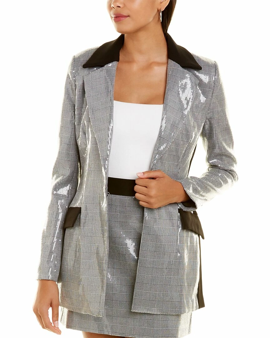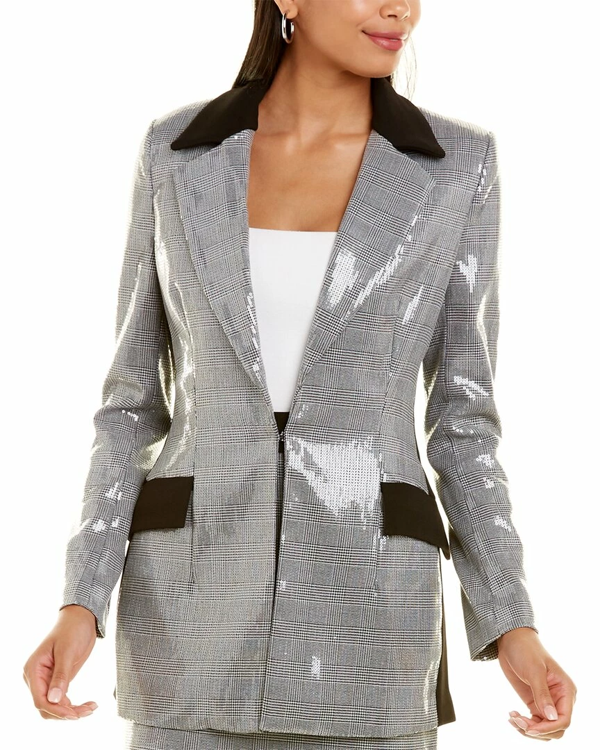 - Zayna Jacket In Check Print With Contrast Lapel, Dual Front Pockets, Center Back Vent, And Sequin Trim
