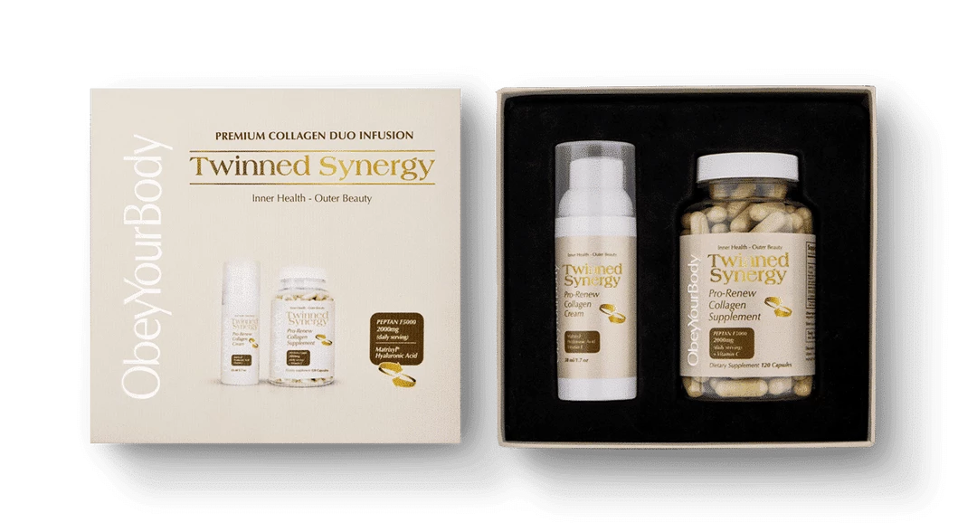 Matrixyl® Collagen in the cream works hand in hand with Peptan® in the supplement to boost natural Collagen production. This is further supported by the Astaxanthin and Vitamin C, in the supplement, which promote and support collagen.