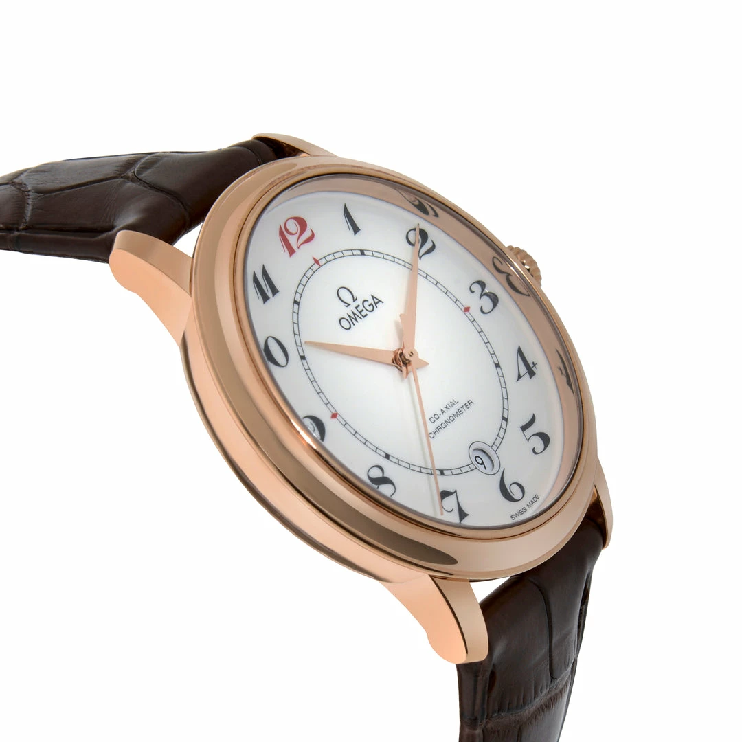 Omega De Ville Ladymatic Round 34mm Stainless Steel case on a Leather Strap with Deployant clasp, White dial with Date, Co-Axial Calibre 8520 movement with Sapphire crystal, Exhibition case back and water resistant to 100m. This fine timepiece ships with a Omega box and includes a 2 year ShopWorn warranty.