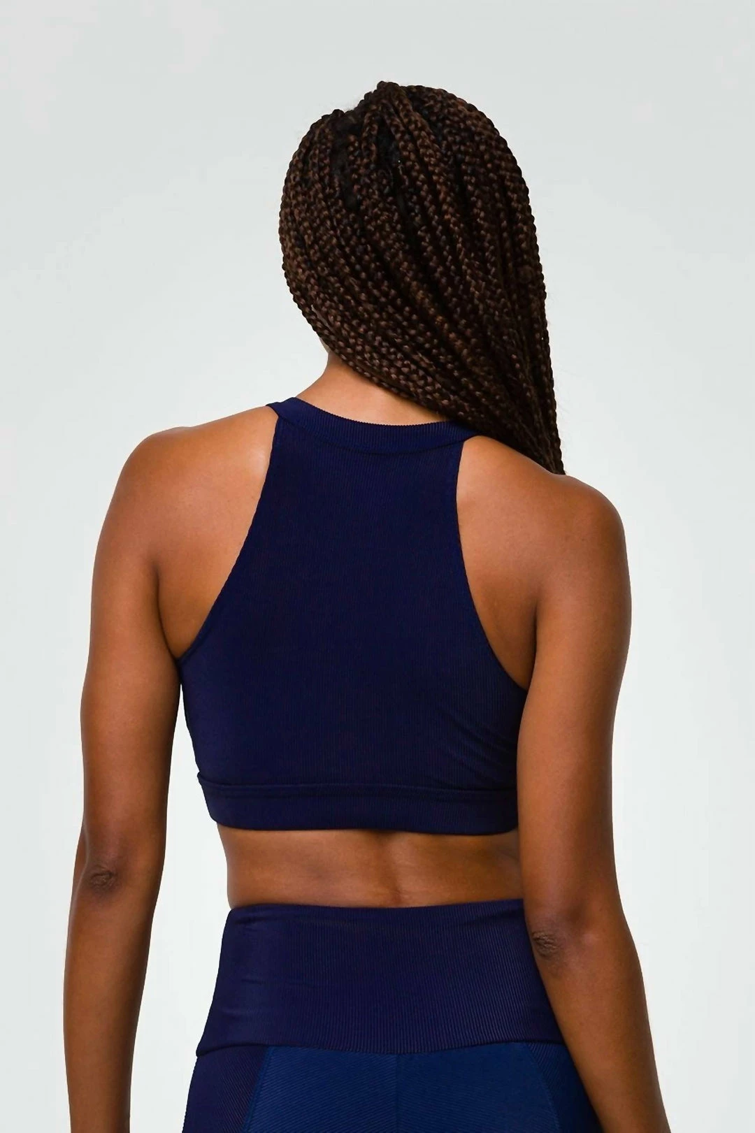 This longline sports bra doubles as a crop top and shows off just the right amount of midriff. Pair this ribbed textured top with your favorite high-rise leggings or even your high-rise denim for a look that takes you from your mat and beyond