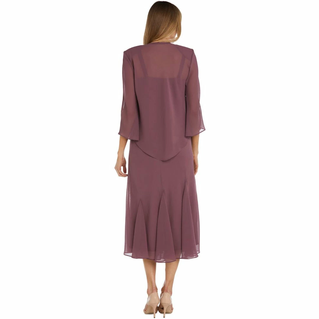 This two-piece dress and jacket set by R&M Richards offers elegant, classy style. Beaded embellishments are coupled with ruffled details to deliver a style that is classy and feminine. It features a dainty tea length construction, allover beading, and a dreamy draped cut. It’s versatility and elevated style will make it an essential for all your formal occasions. The R&M Richards eveningwear collection offers classic, elegant pieces that will have you reaching for them time after time again. This distinguished brand caters upscale, affordable fashion to all body shapes, sizes, and fashion senses. This set is guaranteed authentic.