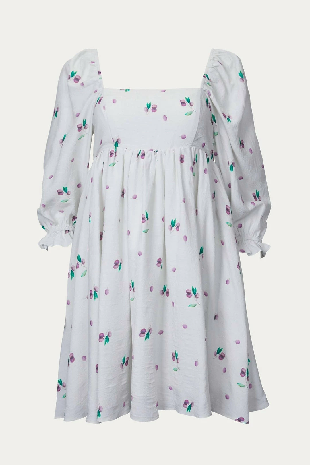 Storia Grape-Print Baby Doll Mini Dress in Light Grey – women