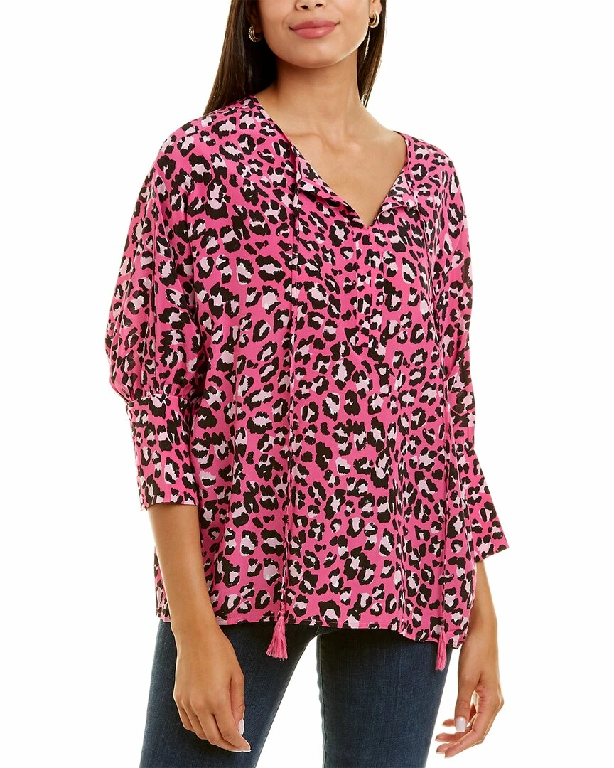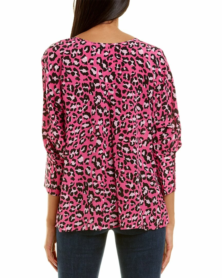 - Cassidy Silk Top In Multicolor Animal With Split Neckline With Self-Tie Detail And Dolman Sleeves With Button Cuffs