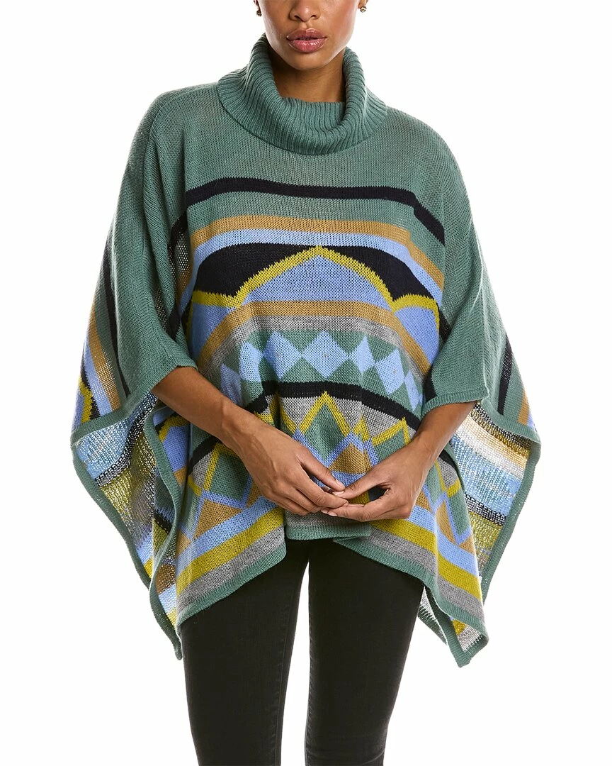 - Turtleneck Wool & Alpaca-Blend Capelet In Multicolor With Ribbed Turtleneck And Draped Hem